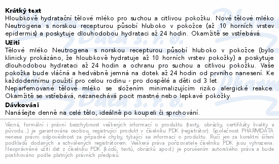 Neutrogena NR hlou.hydr.těl.mléko citl.pl.400ml