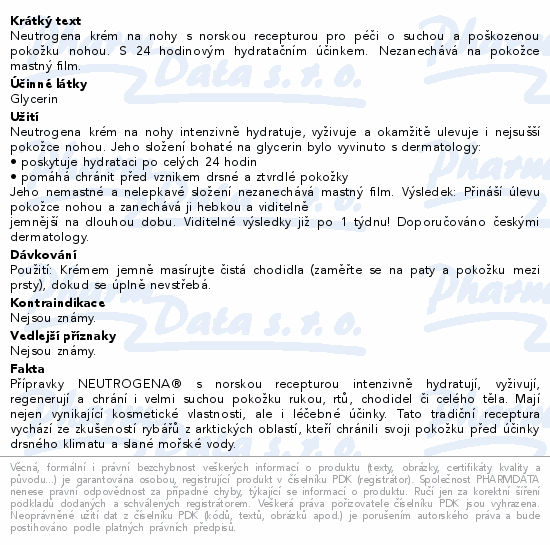 Neutrogena krém na nohy s norskou recepturou pro péči o suchou a poškozenou pokožku nohou. S 24 hodinovým hydratačním účinkem. Nezanechává na pokožce mastný film.