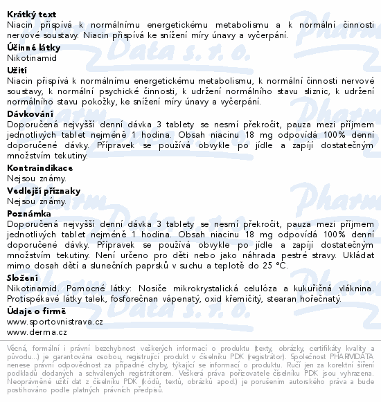 Niacin přispívá k normálnímu energetickému metabolismu a k normální činnosti nervové soustavy. Niacin přispívá ke snížení míry únavy a vyčerpání.