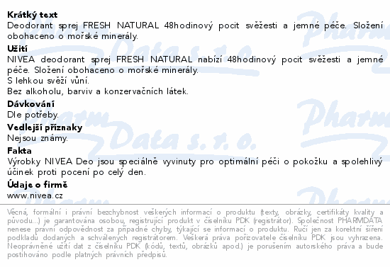 Deodorant sprej FRESH NATURAL 48hodinový pocit svěžesti a jemné péče. Složení obohaceno o mořské minerály.