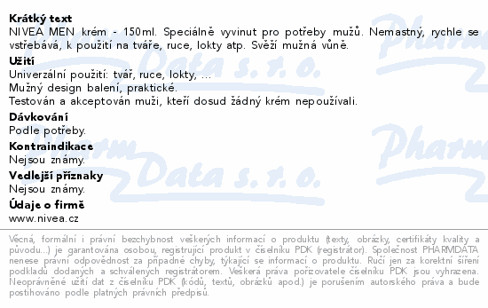 NIVEA MEN krém - 150ml. Speciálně vyvinut pro potřeby mužů. Nemastný, rychle se vstřebává, k použití na tváře, ruce, lokty atp. Svěží mužná vůně.