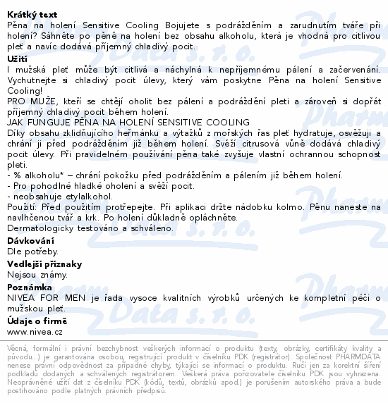 Pěna na holení Sensitive Cooling Bojujete s podrážděním a zarudnutím tváře při holení? Sáhněte po pěně na holení bez obsahu alkoholu, která je vhodná pro citlivou pleť a navíc dodává příjemný chladivý pocit.