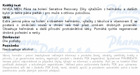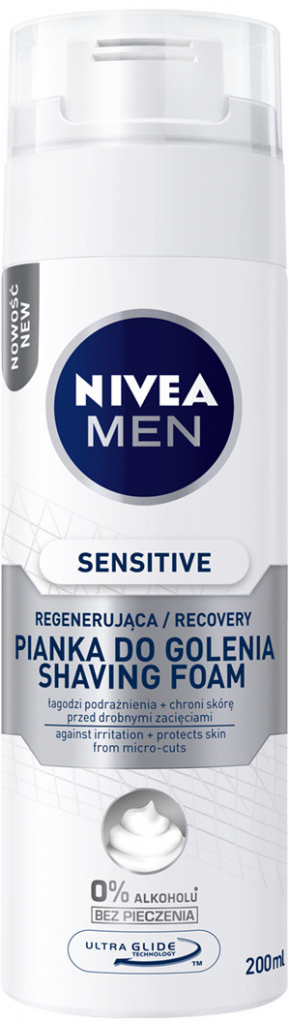 NIVEA MEN Pěna na holení Sensitive Recovery. Díky výtažkům z heřmánku a dalších bylin je tahle pěna parťák i pro muže s citlivou pokožkou.