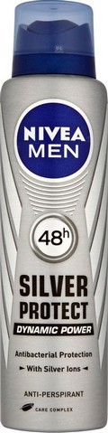 NIVEA Deo Silver Protect Dynamic Power antiperspirant 150ml ve spreji - 48hodinová antibakteriální ochrana proti pocení a pachu s moderní mužnou vůni. Inovativní složení s ionty stříbra efektivně eliminuje pach potu. Bez alkoholu a barviv.