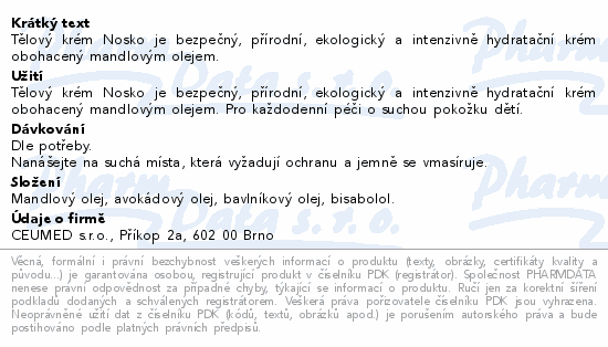 Tělový krém Nosko je bezpečný, přírodní, ekologický a intenzivně hydratační krém obohacený mandlovým olejem.