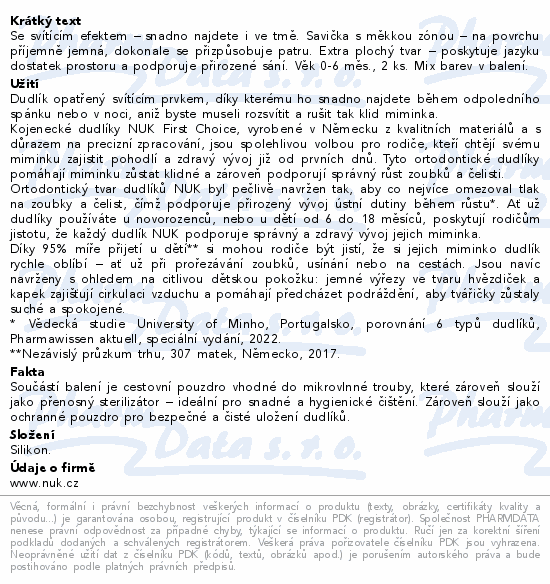 Se svítícím efektem – snadno najdete i ve tmě. Savička s měkkou zónou – na povrchu příjemně jemná, dokonale se přizpůsobuje patru. Extra plochý tvar – poskytuje jazyku dostatek prostoru a podporuje přirozené sání. Věk 0-6 měs., 2 ks. Mix barev v balení.