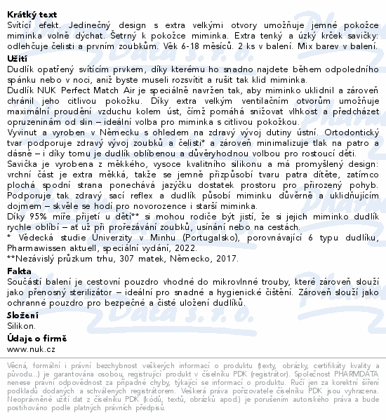 NUK Perfect Match AIR Night dudlík 6-18m 2ks