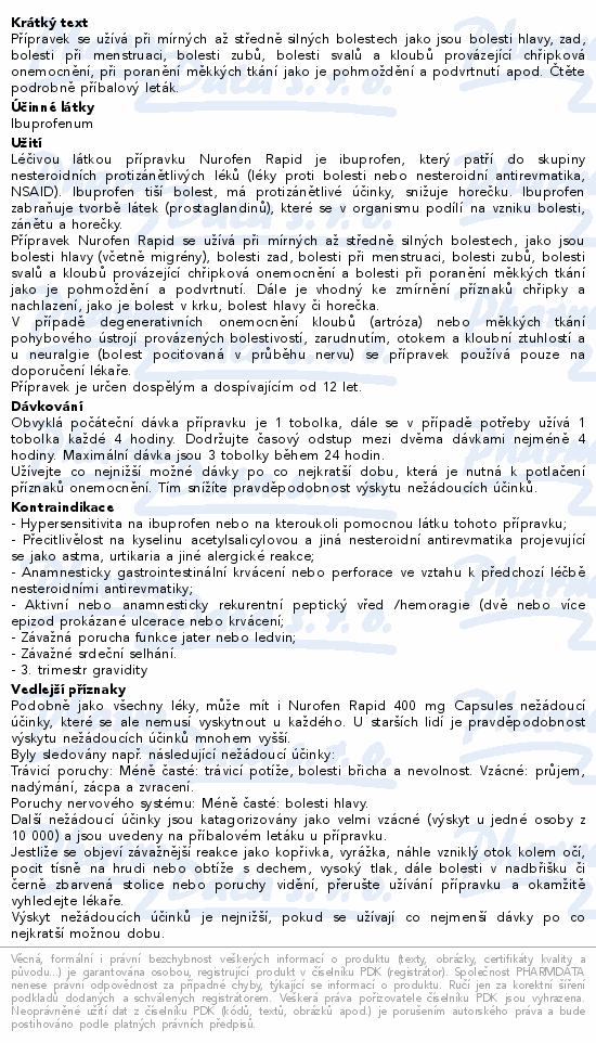 | Farmako-terapeutická skupina, účinné látky: | MUSKULOSKELETÁRNÍ SYSTÉM -> PROTIZÁNĚTLIVÁ A PROTIREVMATICKÁ LÉČIVA -> NESTEROIDNÍ PROTIZÁNĚTLIVÁ A PROTIREVMATICKÁ LÉČIVA -> DERIVÁTY KYSELINY PROPIONOVÉ -> IBUPROFEN |