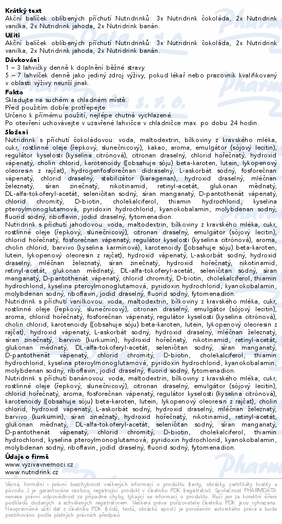 Akční balíček oblíbených příchutí Nutridrinků: 3x Nutridrink čokoláda, 2x Nutridrink vanilka, 2x Nutridrink jahoda, 2x Nutridrink banán.