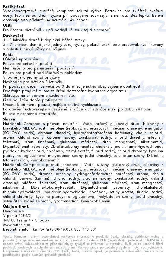 Vysokoenergetická nutričně kompletní tekutá výživa. Potravina pro zvláštní lékařské účely. Pro řízenou dietní výživu při podvýživě související s nemocí. Bez lepku. Balení obsahuje tyto příchutě: 4x neutrální, 4x jahoda.