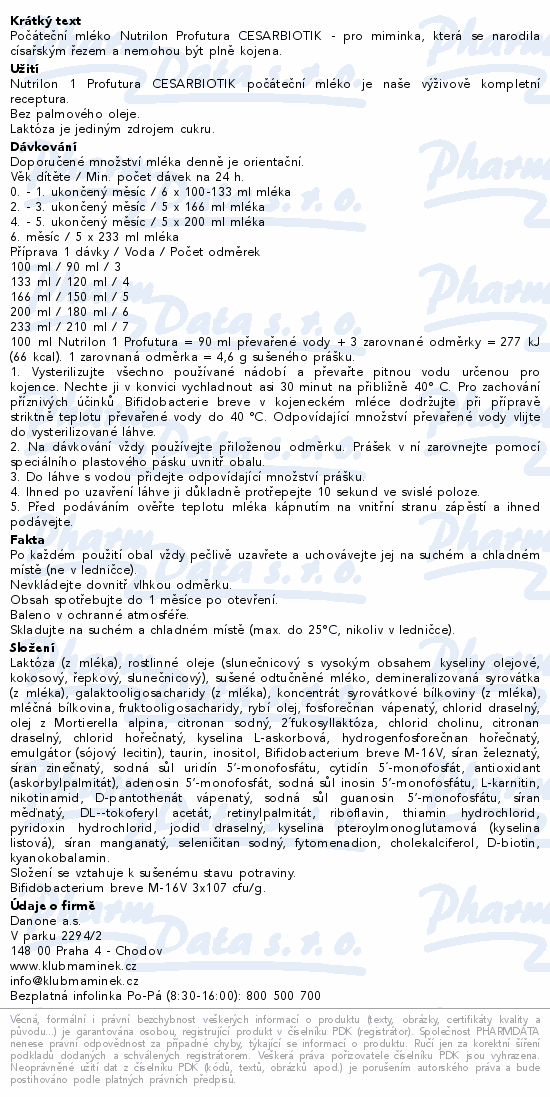 Počáteční mléko Nutrilon Profutura CESARBIOTIK - pro miminka, která se narodila císařským řezem a nemohou být plně kojena.