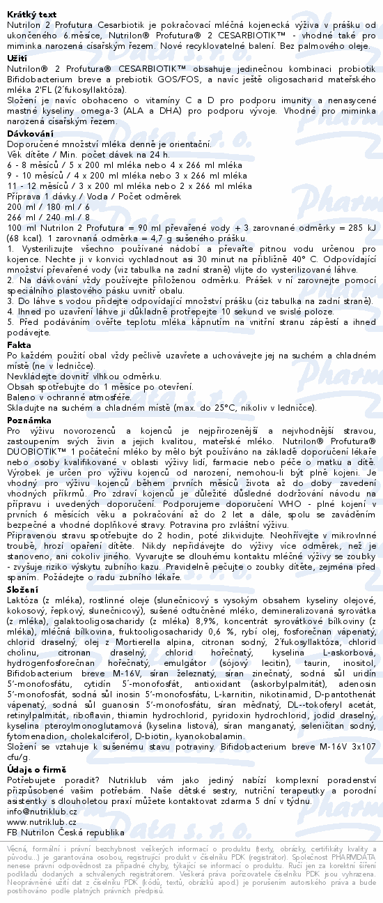 Nutrilon 2 Profutura Cesarbiotik je pokračovací mléčná kojenecká výživa v prášku od ukončeného 6.měsíce, Nutrilon® Profutura® 2 CESARBIOTIK™ - vhodné také pro miminka narozená císařským řezem. Nové recyklovatelné balení. Bez palmového oleje.