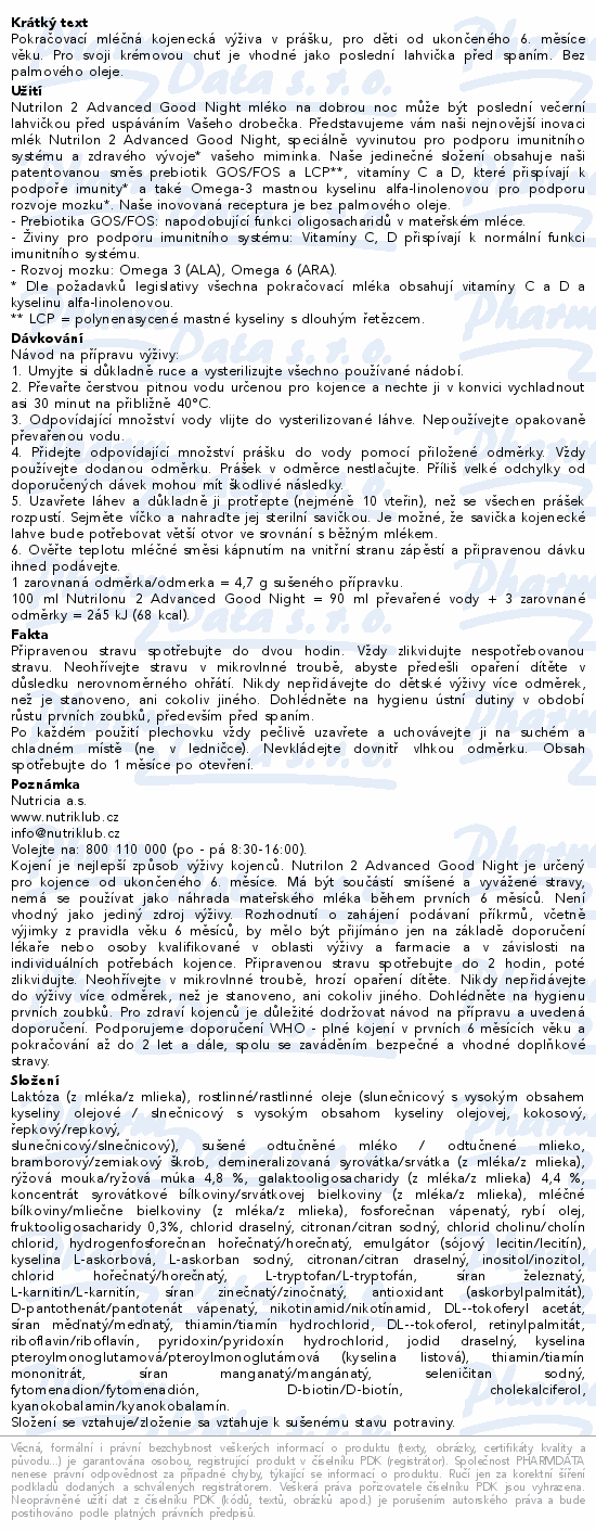 Pokračovací mléčná kojenecká výživa v prášku, pro děti od ukončeného 6. měsíce věku. Pro svoji krémovou chuť je vhodné jako poslední lahvička před spaním. Bez palmového oleje.