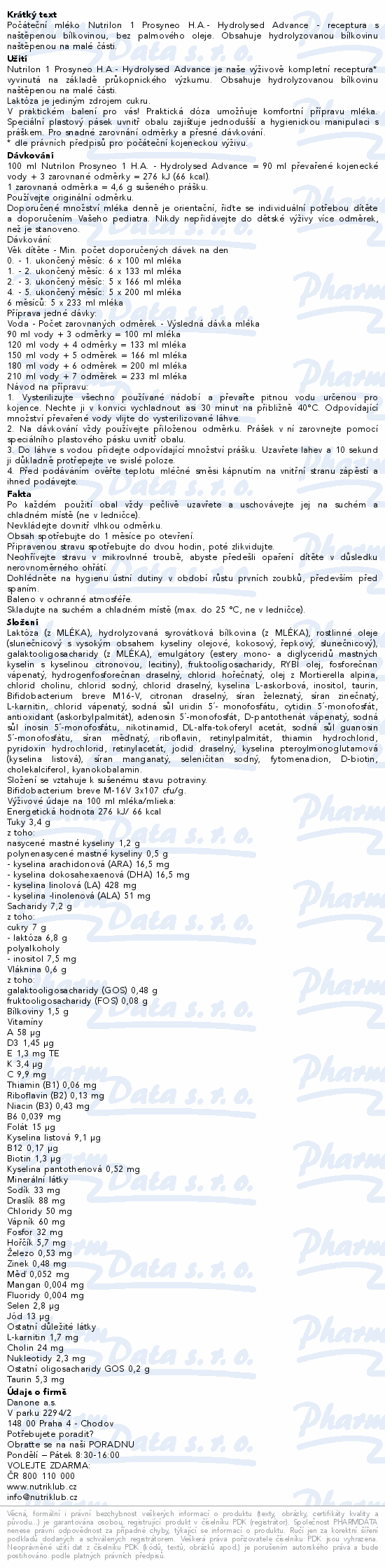 Počáteční mléko Nutrilon 1 Prosyneo H.A.- Hydrolysed Advance - receptura s naštěpenou bílkovinou, bez palmového oleje. Obsahuje hydrolyzovanou bílkovinu naštěpenou na malé části.