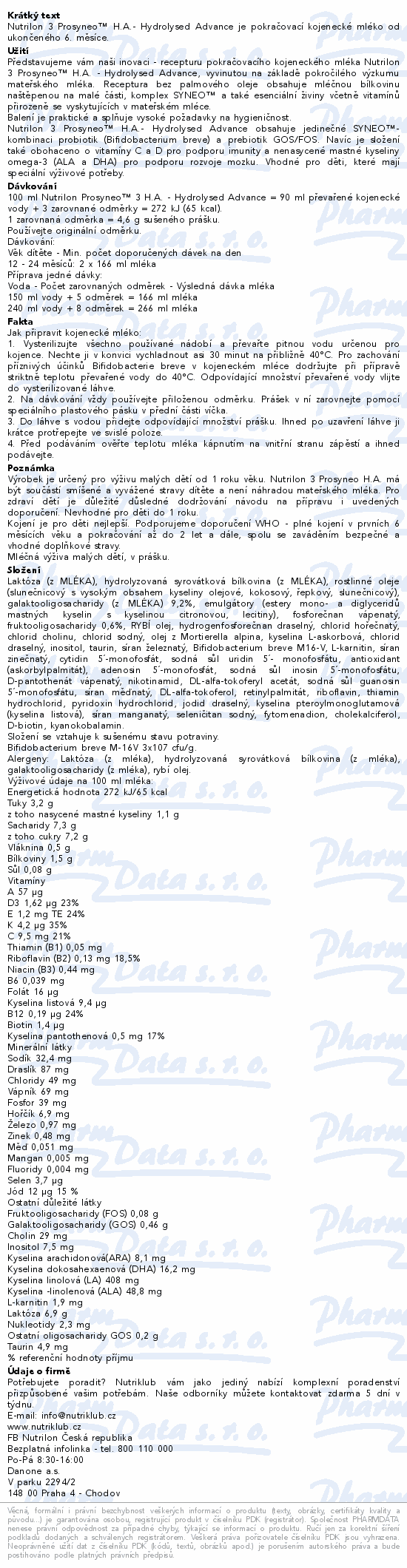 Nutrilon 3 Prosyneo™ H.A.- Hydrolysed Advance je pokračovací kojenecké mléko od ukončeného 6. měsíce.