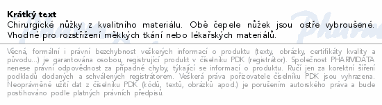 Chirurgické nůžky z kvalitního materiálu. Obě čepele nůžek jsou ostře vybroušené. Vhodné pro rozstřižení měkkých tkání nebo lékařských materiálů.
