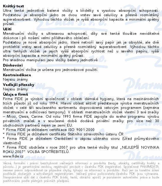 Ultra tenké jednotlivě balené vložky s křidélky s vysokou absorpční schopností. Podstatou je absorpční jádro ze dvou vrstev savé celulózy a přesně rozmístěný superabsorbent. Výhodou těchto vložek je vyšší absorpční kapacita a minimální zpětný průsak.