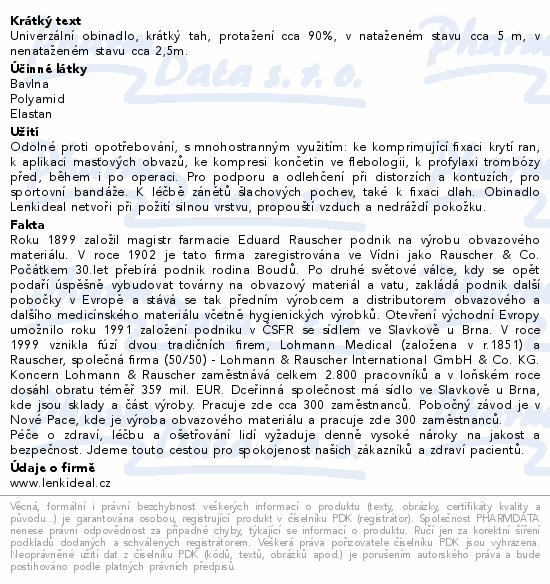Univerzální obinadlo, krátký tah, protažení cca 90%, v nataženém stavu cca 5 m, v nenataženém stavu cca 2,5m.