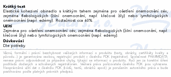 Elastické kohezivní obinadlo s krátkým tahem zejména pro ošetření onemocnění cév, zejména flebologických (žilní onemocnění, např. křečové žíly) nebo lymfologických onemocnění (např. edémy). Roztažnost cca 60%.