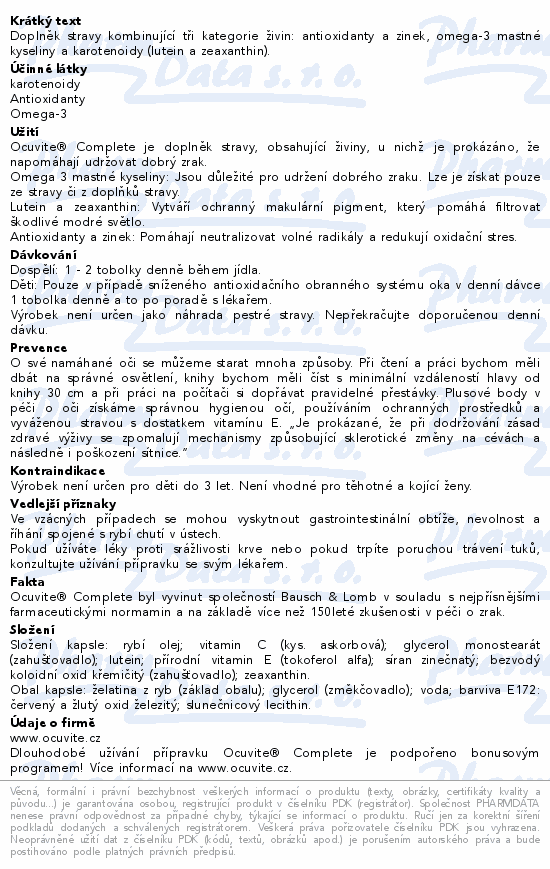 Doplněk stravy kombinující tři kategorie živin: antioxidanty a zinek, omega-3 mastné kyseliny a karotenoidy (lutein a zeaxanthin).