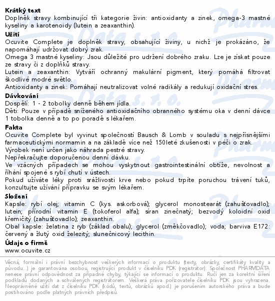 Doplněk stravy kombinující tři kategorie živin: antioxidanty a zinek, omega-3 mastné kyseliny a karotenoidy (lutein a zeaxanthin).