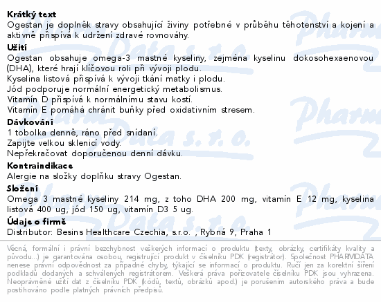 Ogestan je doplněk stravy obsahující živiny potřebné v průběhu těhotenství a kojení a aktivně přispívá k udržení zdravé rovnováhy.