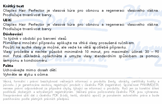 Olaplex Hair Perfector je vlasová kúra pro obnovu a regeneraci vlasového vlákna. Prodlužuje trvanlivost barvy.
