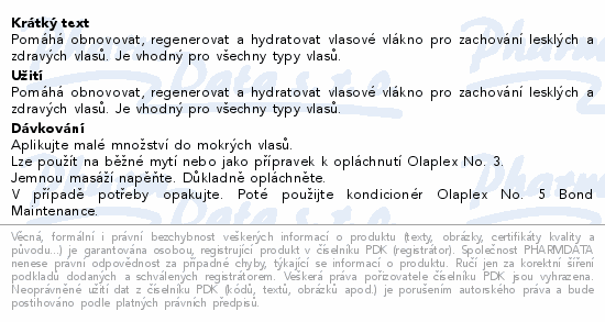 Pomáhá obnovovat, regenerovat a hydratovat vlasové vlákno pro zachování lesklých a zdravých vlasů. Je vhodný pro všechny typy vlasů.