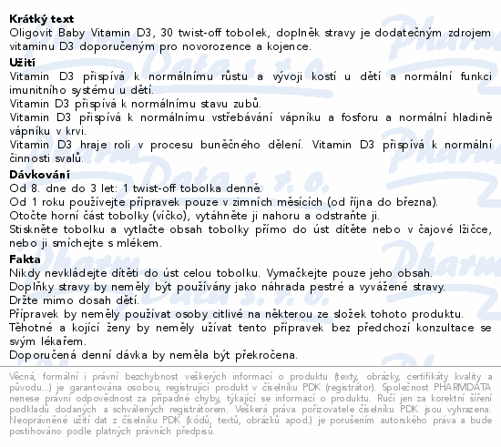 Oligovit Baby Vitamin D3, 30 twist-off tobolek, doplněk stravy je dodatečným zdrojem vitaminu D3 doporučeným pro novorozence a kojence.