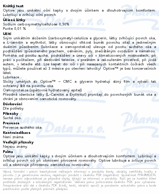Optive jsou unikátní oční kapky s dvojím účinkem a dlouhotrvajícím komfortem. Lubrikují a zvlhčují oční povrch.