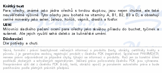 Para ořechy, známé jako jádra ořechů s tvrdou slupkou, jsou nejen chutné, ale také neuvěřitelně výživné. Tyto ořechy jsou bohaté na vitamíny A, B1, B2, B3 a D, a obsahují cenné minerály jako selen, železo, hořčík, vápník, draslík a fosfor.