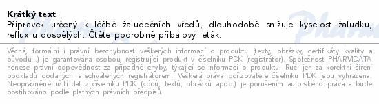 Přípravek určený k léčbě žaludečních vředů, dlouhodobě snižuje kyselost žaludku, reflux u dospělých. Čtěte pozorně příbalový leták.