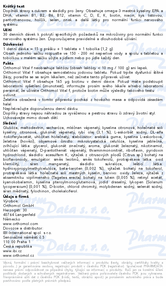 Doplněk stravy s cukrem a sladidly pro ženy. Obsahuje omega-3 mastné kyseliny EPA a DHA, vitamin B1, B2, B6, B12, vitamin C, D, E, K, biotin, niacin, kys. listovou, pantothenovou, hořčík, selen, zinek a další látky pro normální funkci nervového systému.