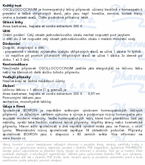 Oscillococcinum, homeopatický léčivý přípravek k vnitřnímu užití.
