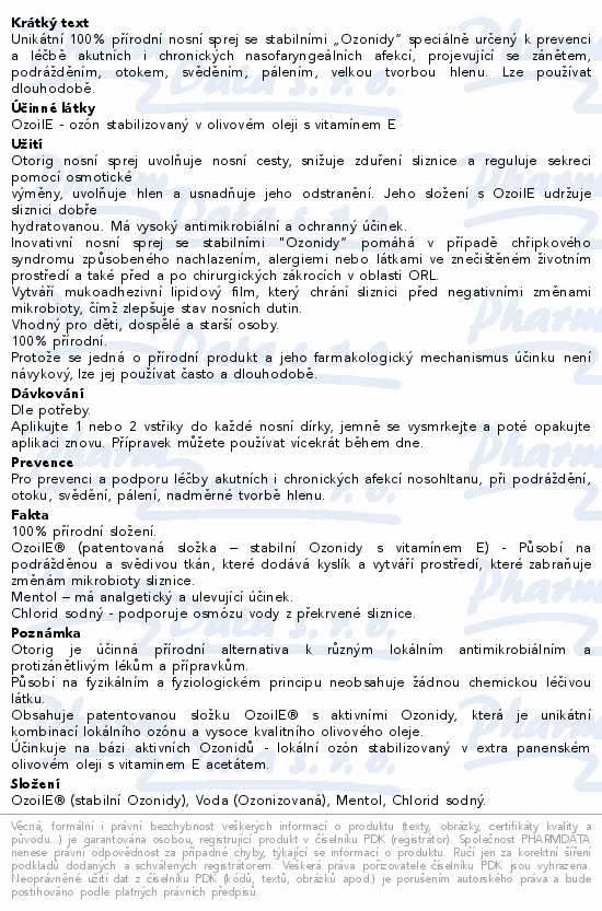 Unikátní 100% přírodní nosní sprej se stabilními „Ozonidy“ speciálně určený k prevenci a léčbě akutních i chronických nasofaryngeálních afekcí, projevující se zánětem, podrážděním, otokem, svěděním, pálením, velkou tvorbou hlenu. Lze používat dlouhodobě.