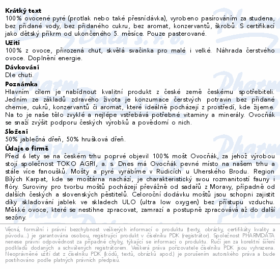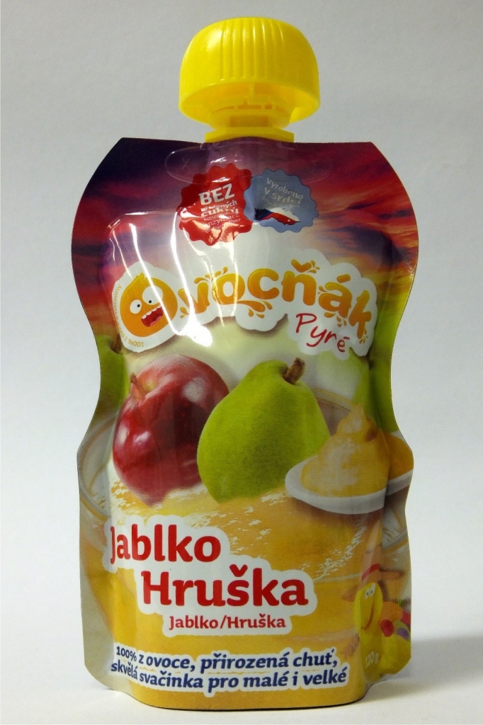 100% ovocené pyré (protlak nebo také přesnídávka), vyrobeno pasírováním za studena, bez přidané vody, bez přidaného cukru, bez aromat, konzervantů, škrobů. S certifikací jako dětský příkrm od ukončeného 5. měsíce. Pouze pasterované.