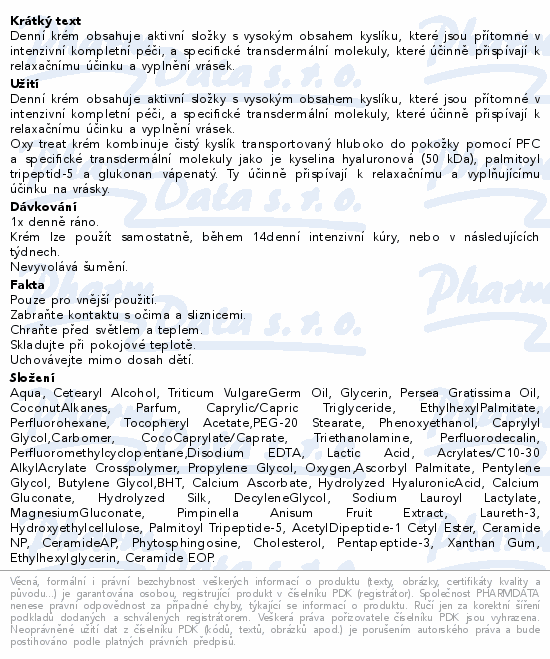 Denní krém obsahuje aktivní složky s vysokým obsahem kyslíku, které jsou přítomné v intenzivní kompletní péči, a specifické transdermální molekuly, které účinně přispívají k relaxačnímu účinku a vyplnění vrásek.