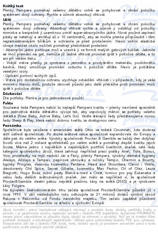Plenky Pampers pomáhají vašemu děťátku volně se pohybovat a chrání pokožku systémem dvojí ochrany. Rychle a účinně absorbují vlhkost.