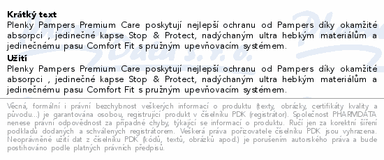 Plenky Pampers Premium Care poskytují nejlepší ochranu od Pampers díky okamžité absorpci , jedinečné kapse Stop & Protect, nadýchaným ultra hebkým materiálům a jedinečnému pasu Comfort Fit s pružným upevňovacím systémem.