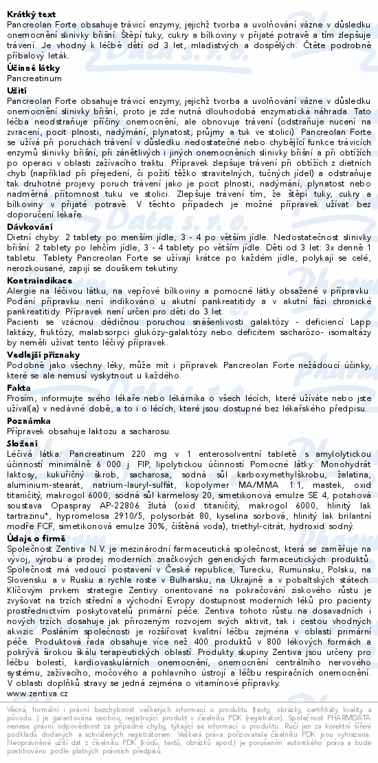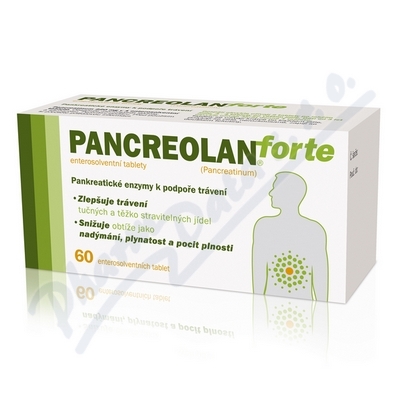 Pancreolan Forte obsahuje trávicí enzymy, jejichž tvorba a uvolňování vázne v důsledku onemocnění slinivky břišní. Štěpí tuky, cukry a bílkoviny v přijaté potravě a tím zlepšuje trávení. Je vhodný k léčbě dětí od 3 let, mladistvých a dospělých. Čtěte pozorně příbalový leták.