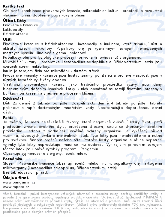 Oblíbená kombinace pivovarských kvasnic, mikrobiálních kultur - probiotik a rozpustné vlákniny inulinu, doplněné pupalkovým olejem.