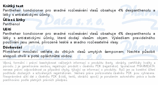 Panthehair kondicioner pro snadné rozčesávání vlasů obsahuje 4% dexpanthenolu a látky s antistatickými účinky.