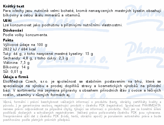 Para ořechy jsou nutričně velmi bohaté, kromě nenasycených mastných kyselin obsahují bílkoviny a celou škálu minerálů a vitaminů.