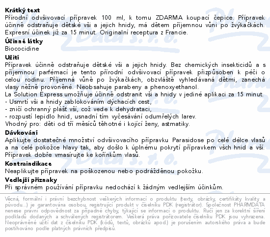 Přírodní odvšivovací přípravek 100 ml, k tomu ZDARMA koupací čepice. Přípravek účinně odstraňuje dětské vši a jejich hnidy, má dětem příjemnou vůni po žvýkačkách. Expresní účinek již za 15 minut. Originalní receptura z Francie.