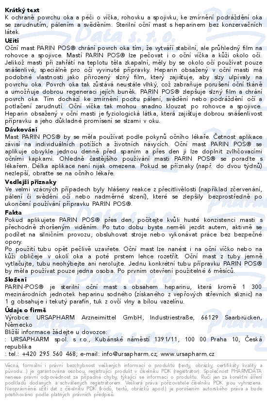 K ochraně povrchu oka a péči o víčka, rohovku a spojivku, ke zmírnění podráždění oka se zarudnutím, pálením a svěděním. Sterilní oční mast s heparinem bez konzervačních látek.