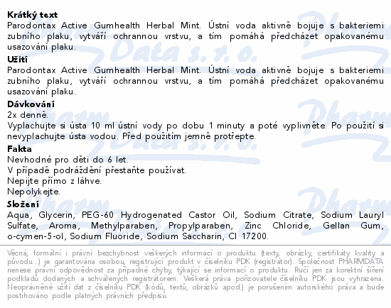 Parodontax Active Gumhealth Herbal Mint. Ústní voda aktivně bojuje s bakteriemi zubního plaku, vytváří ochrannou vrstvu, a tím pomáhá předcházet opakovanému usazování plaku.