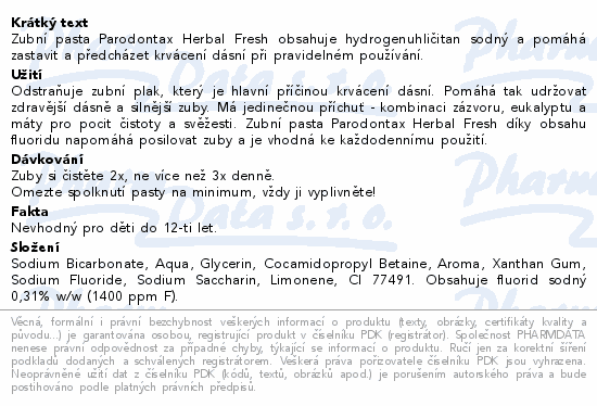 Zubní pasta Parodontax Herbal Fresh obsahuje hydrogenuhličitan sodný a pomáhá zastavit a předcházet krvácení dásní při pravidelném používání.