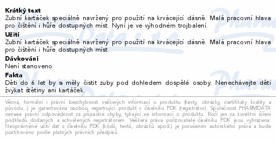 Zubní kartáček speciálně navržený pro použití na krvácející dásně. Malá pracovní hlava pro čištění i hůře dostupných míst. Nyní je ve výhodném trojbalení.