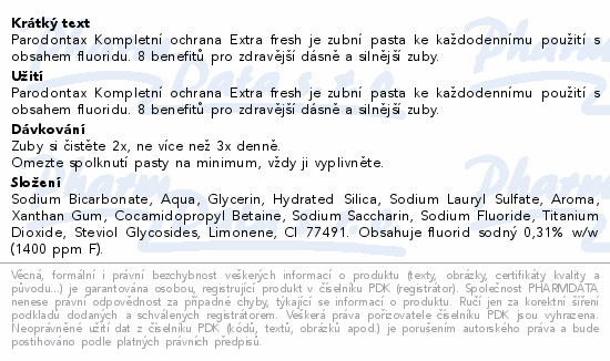 Parodontax Kompletní ochrana Extra fresh je zubní pasta ke každodennímu použití s obsahem fluoridu. 8 benefitů pro zdravější dásně a silnější zuby.