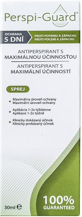 Perspi-Guard antiperspirant sprej eliminuje pocení a zápach. Antiperspirant s maximální účinností a dlouhodobou ochranou.